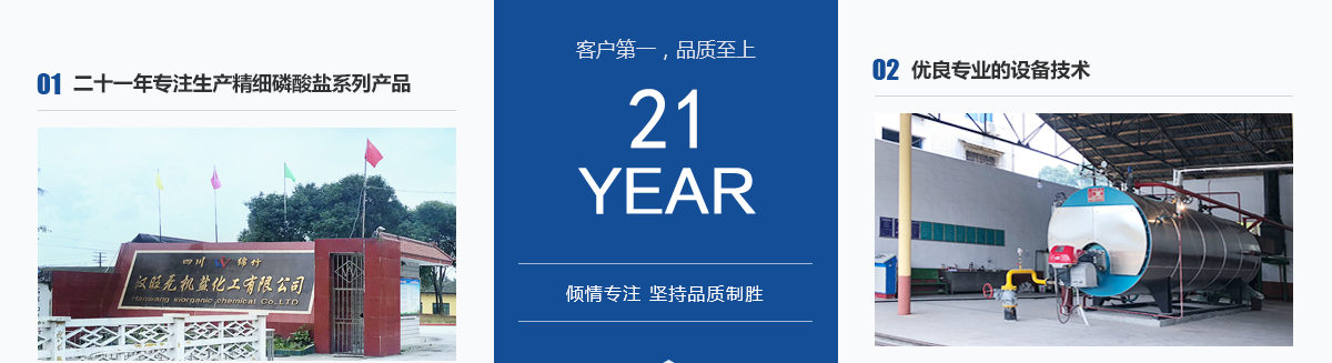 本公司位于四川省綿竹市漢旺鎮(zhèn),是自1997年成立以來至今,已發(fā)展成為四川生產(chǎn)經(jīng)驗(yàn)豐富的精細(xì)磷酸鹽系列產(chǎn)品專業(yè)生產(chǎn)廠家,地理位置優(yōu)越,毗鄰四川新市和拱星工業(yè)園區(qū),與什邡磷化工生產(chǎn)基地交相輝映。主要生產(chǎn)產(chǎn)品有:磷酸二氫鉀、酸式磷酸鉀、磷酸氫二鉀、磷酸脲、磷酸二氫鈉、磷酸氫二鈉、磷酸三鈉、磷酸二氫銨、磷酸氫二銨等系列磷酸鹽產(chǎn)品。